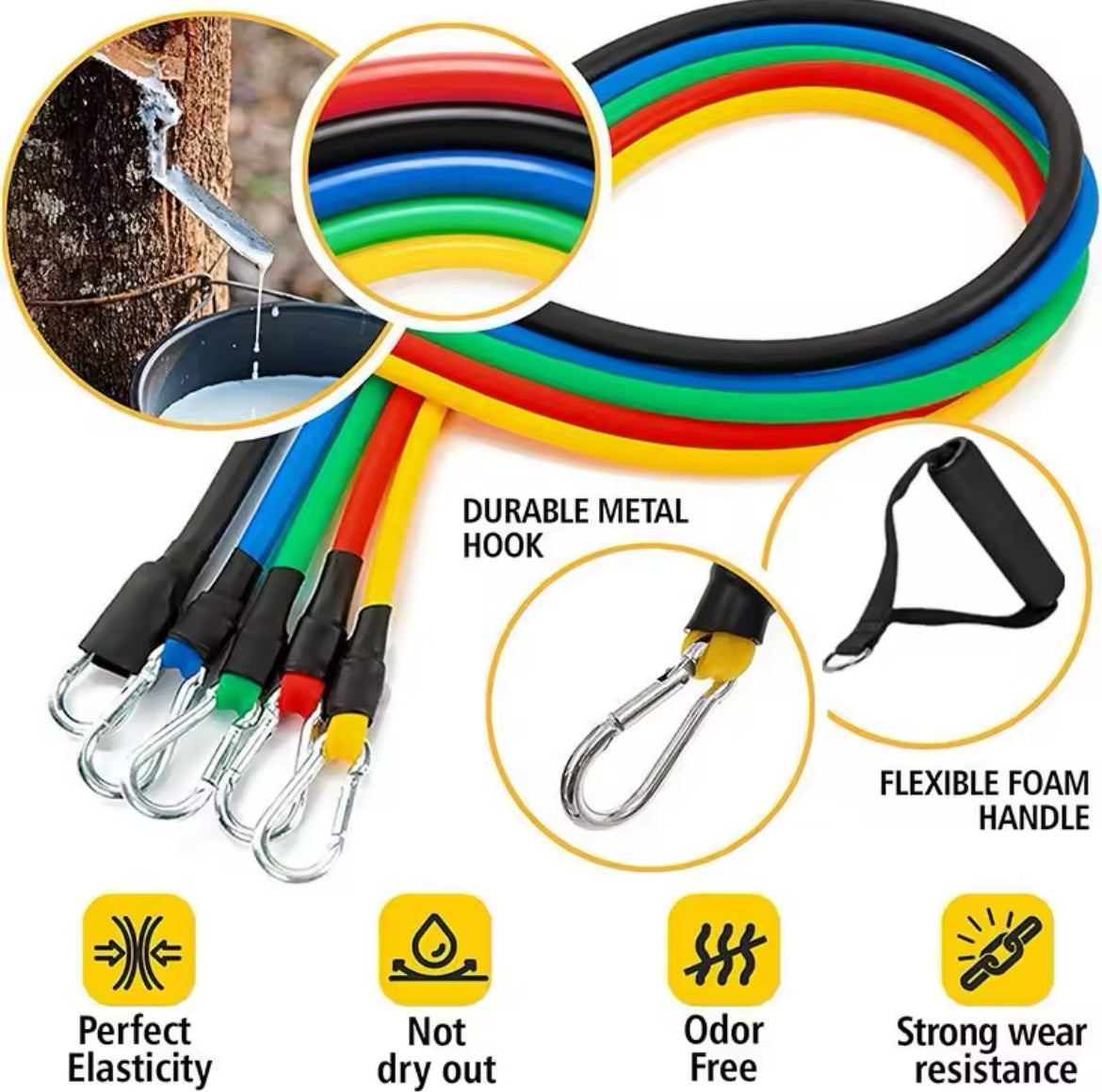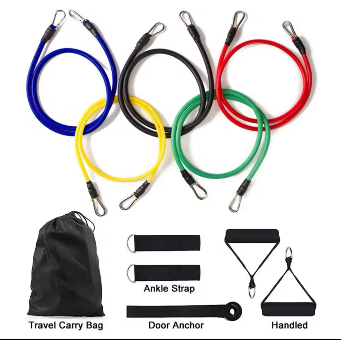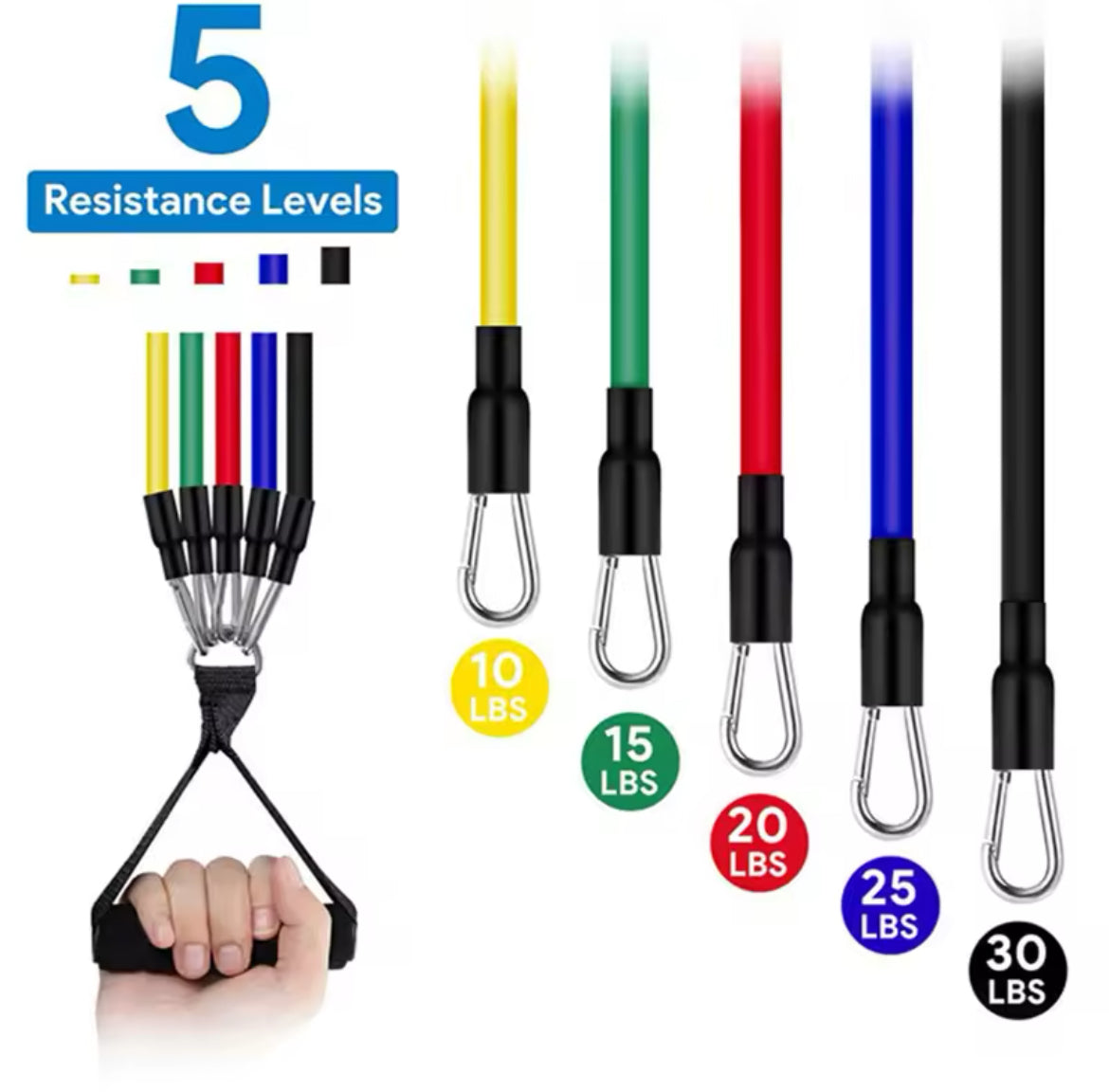 احصل الآن على مجموعة أدوات المقاومة الرياضية الكاملة (11 قطعة) التي تمنحك حرية التدريب في المنزل أو أثناء السفر.